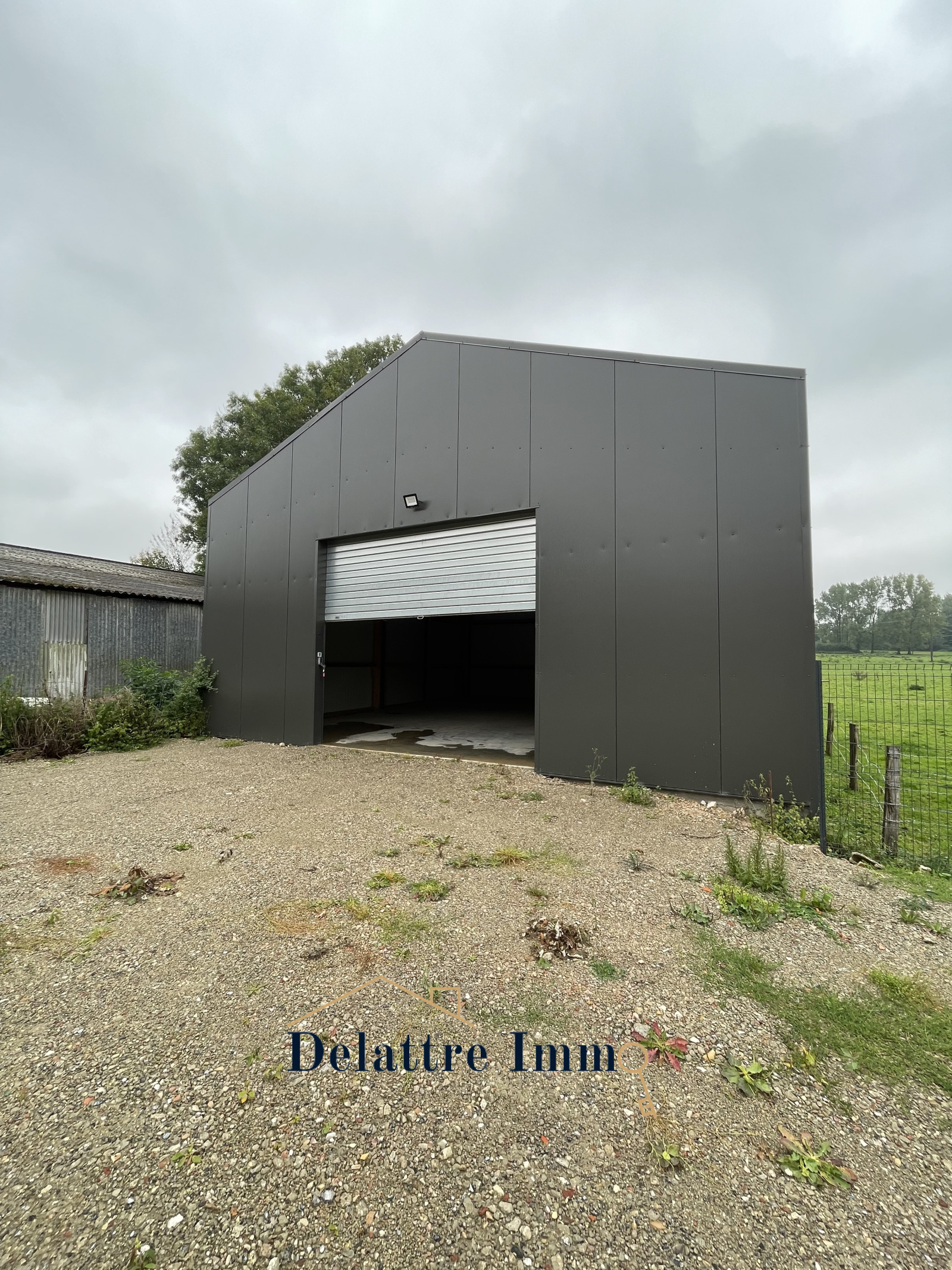 Le Hangar possède l'eau et l'électricité avec porte motorisée de 4m sur 3m50.